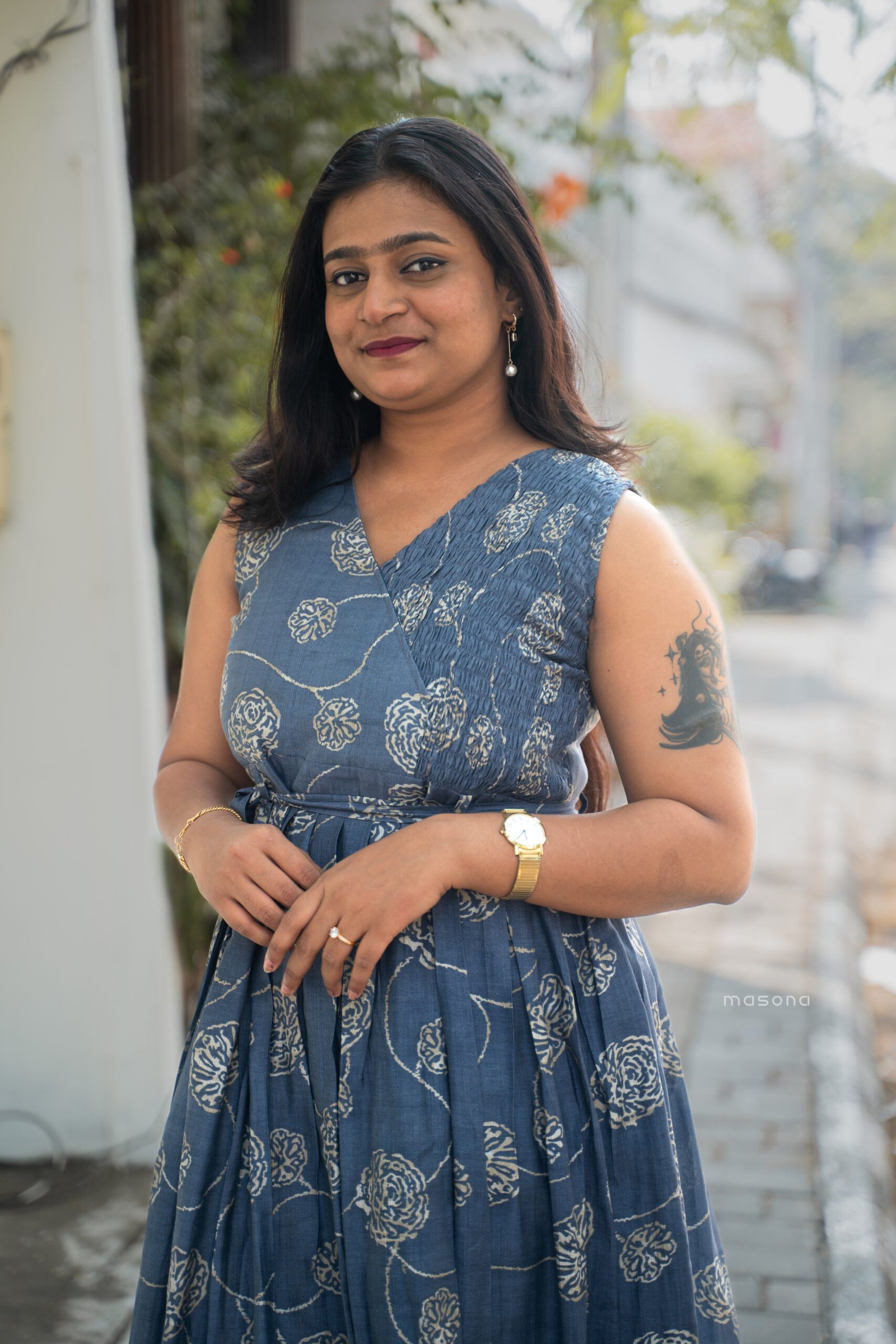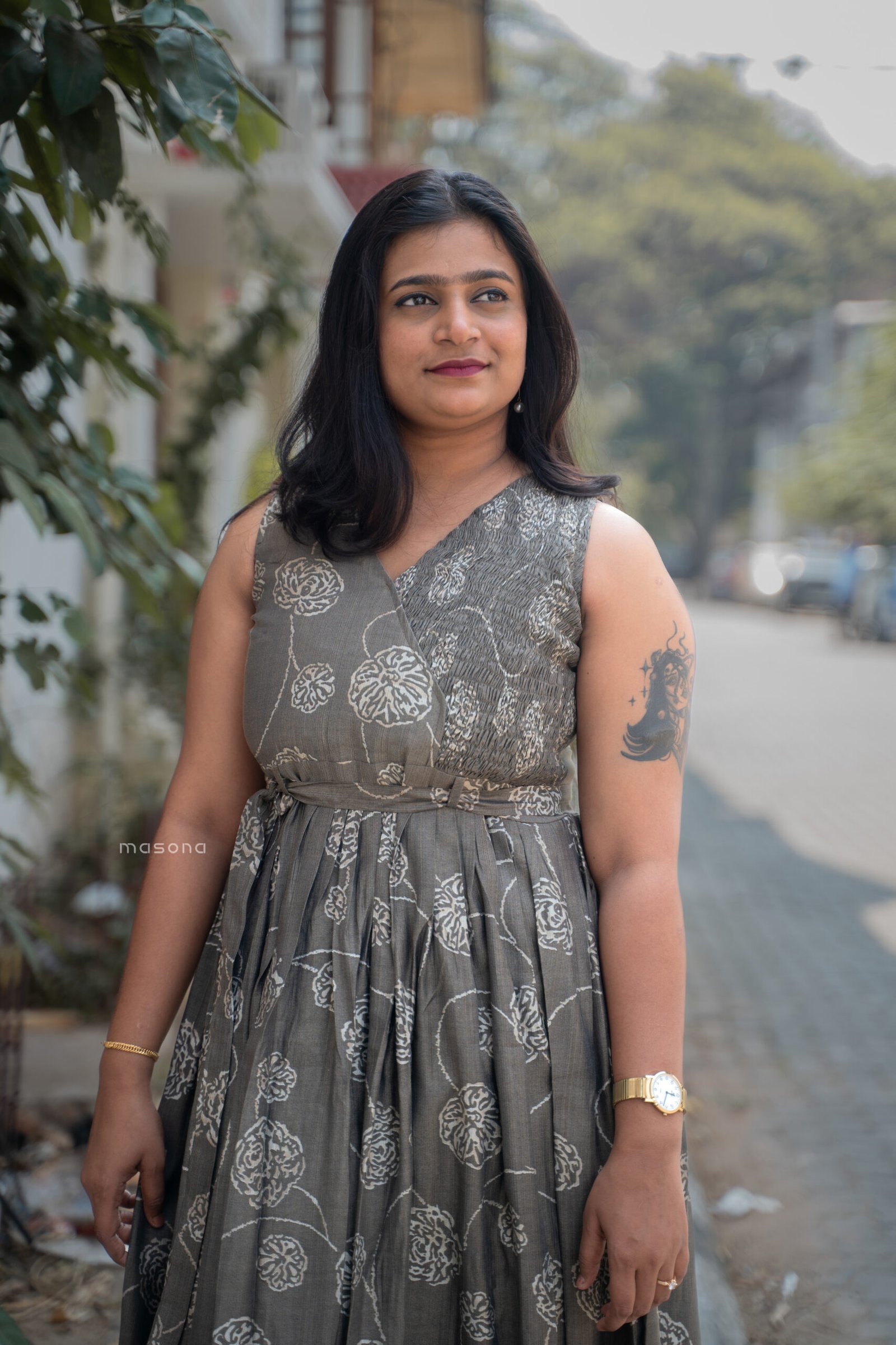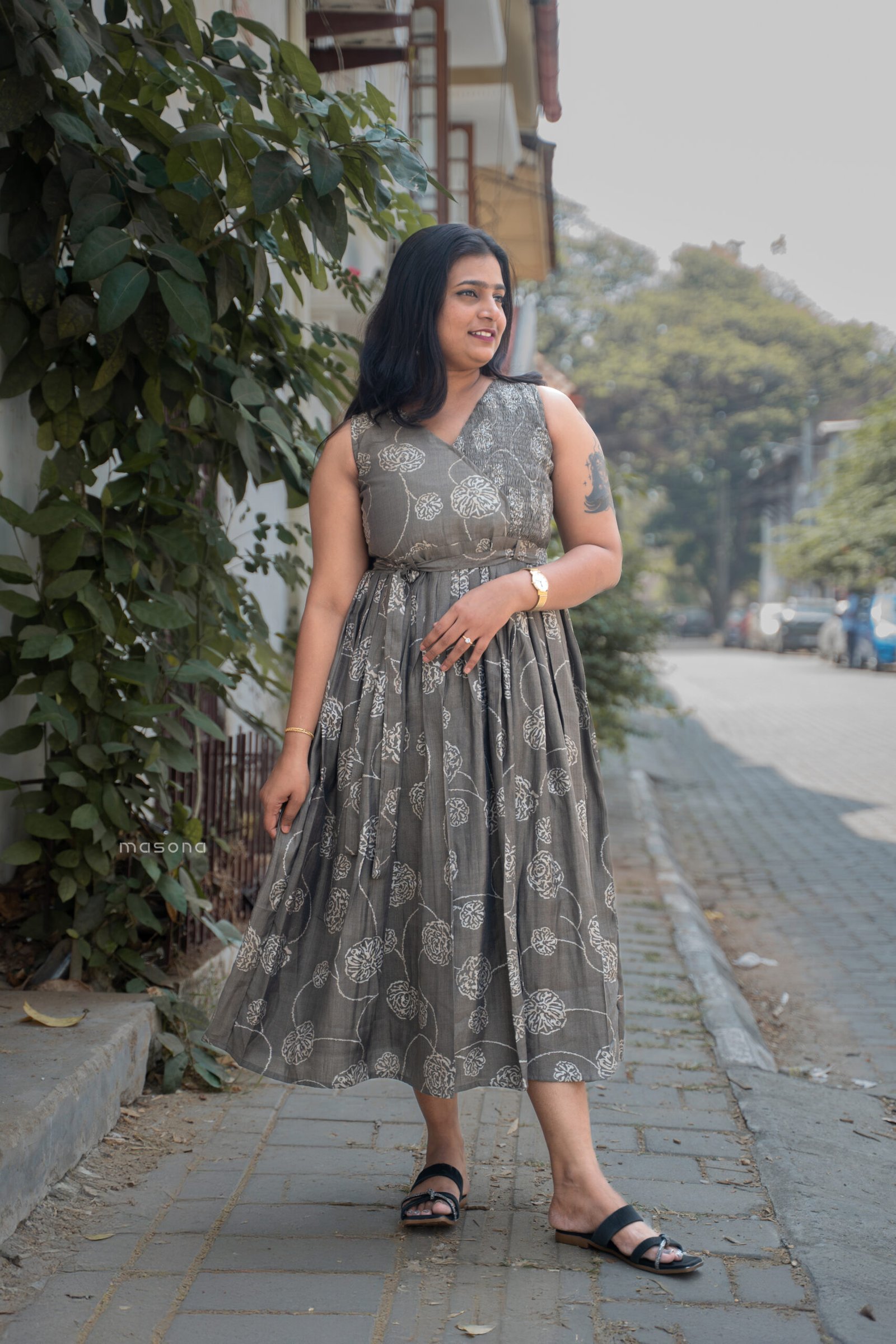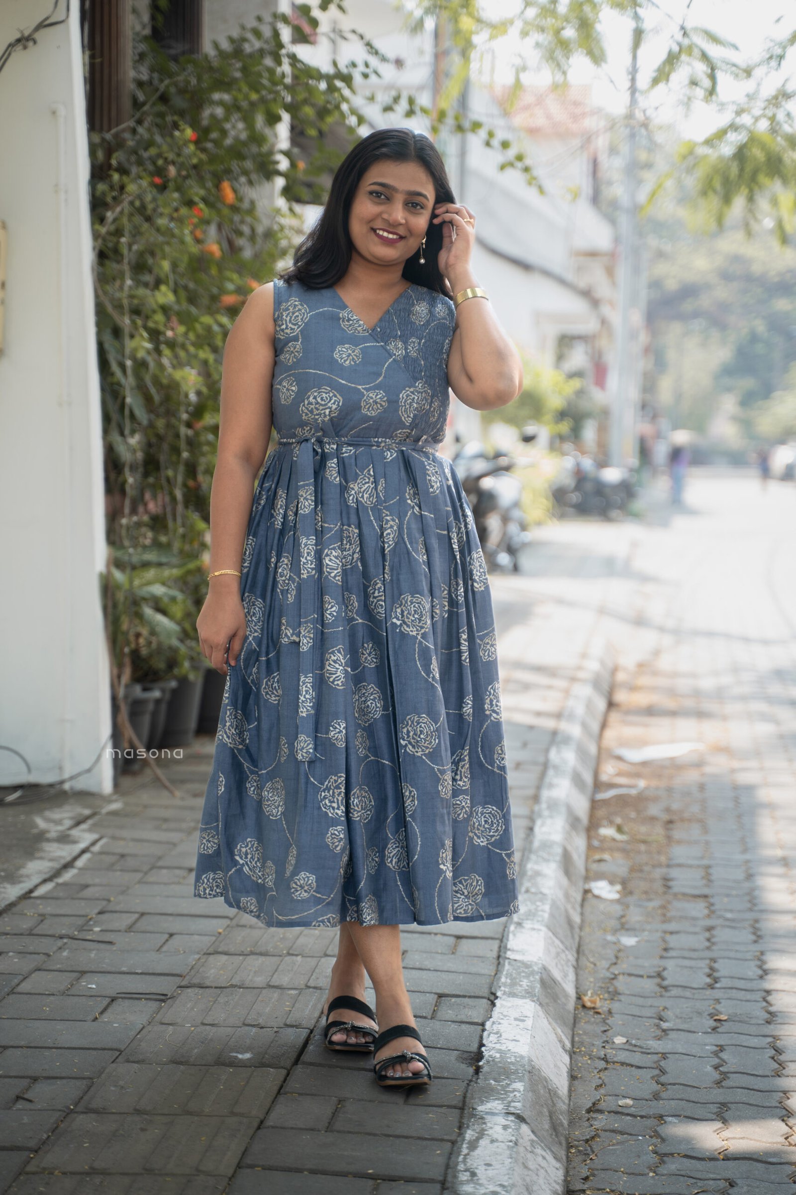 “Step into effortless elegance with this sleeveless frock dress designed with a flattering v neck and an empire waist, perfect for casual wear, day outings, everyday elegance”.