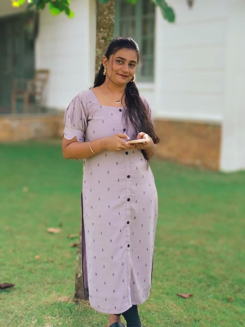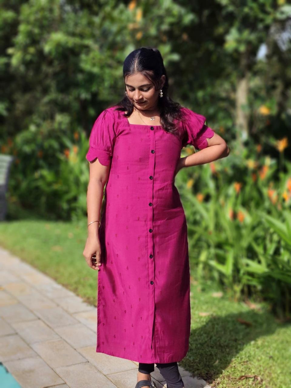 Elevate your everyday style with this elegant colors. Designed with a square neckline and short puff sleeves, it brings a perfect blend of simplicity and charm. The kurti features a front button down pattern that adds a touch of modern detailing , while the minimal all over motifs keep the look subtle and sophisticated.