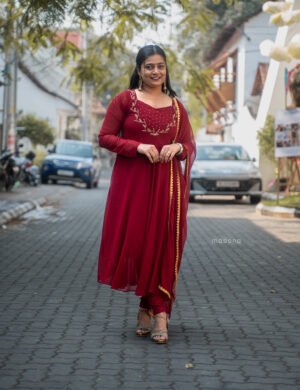 Crocodile Crushed Rayon Self Embroidered Top with Plain Bottom – M1803