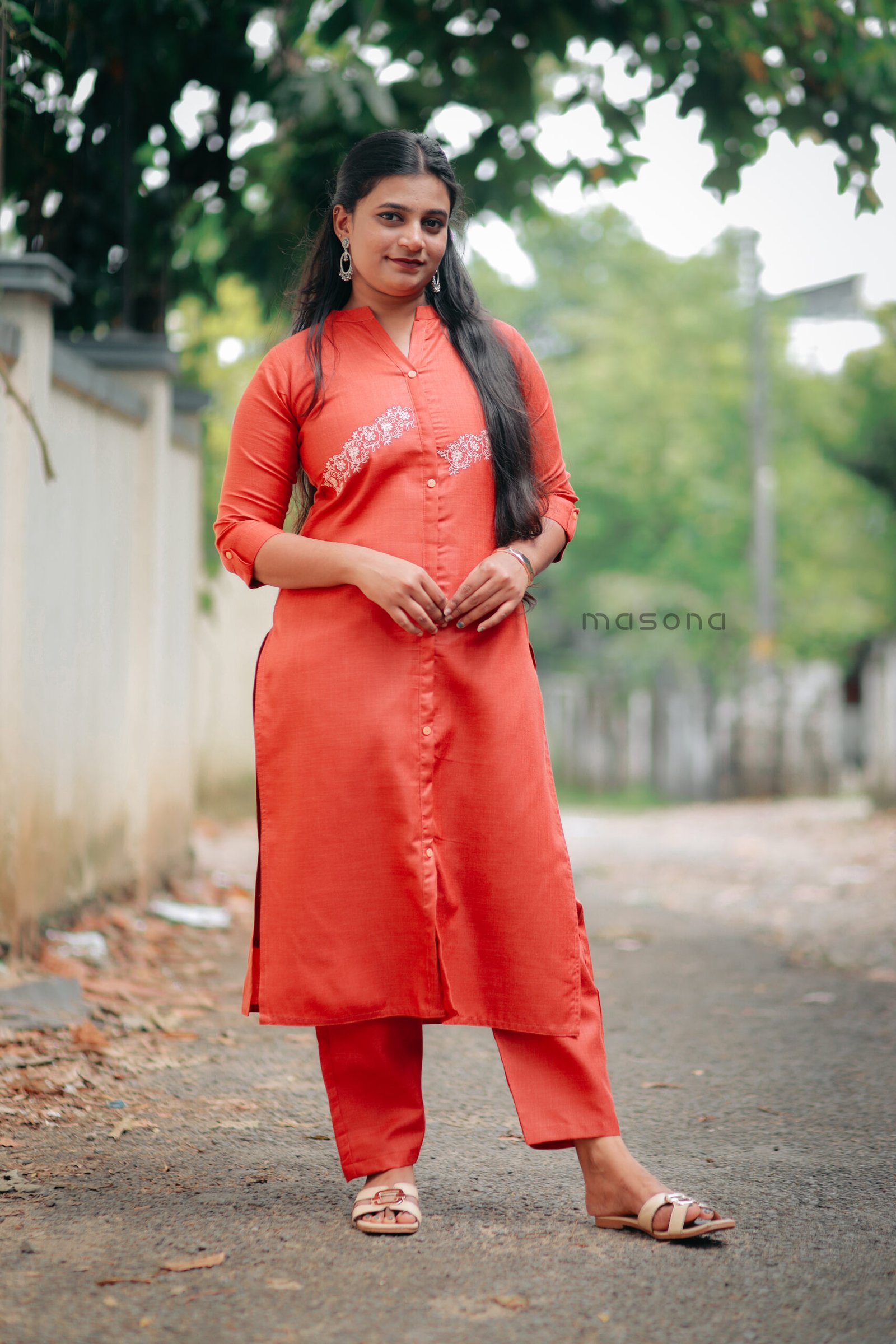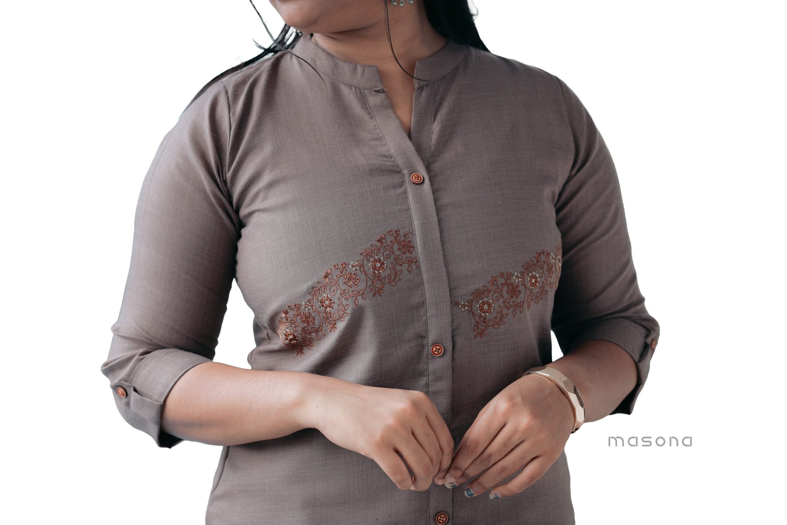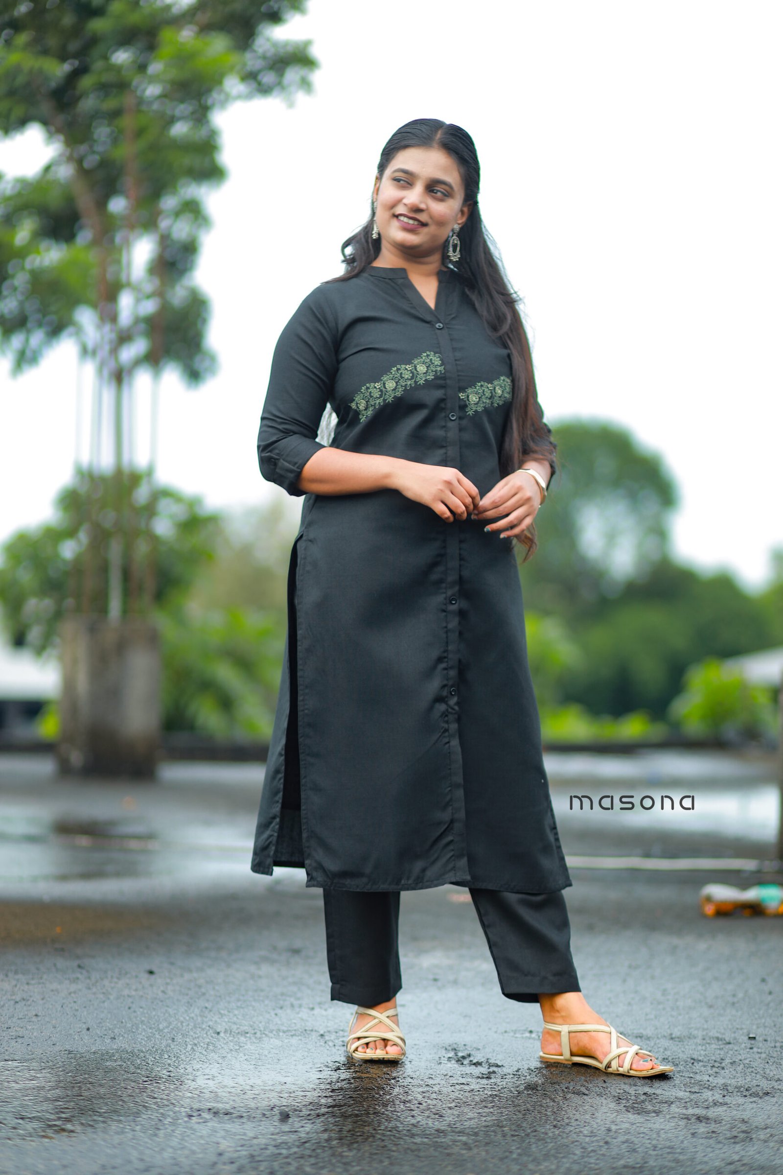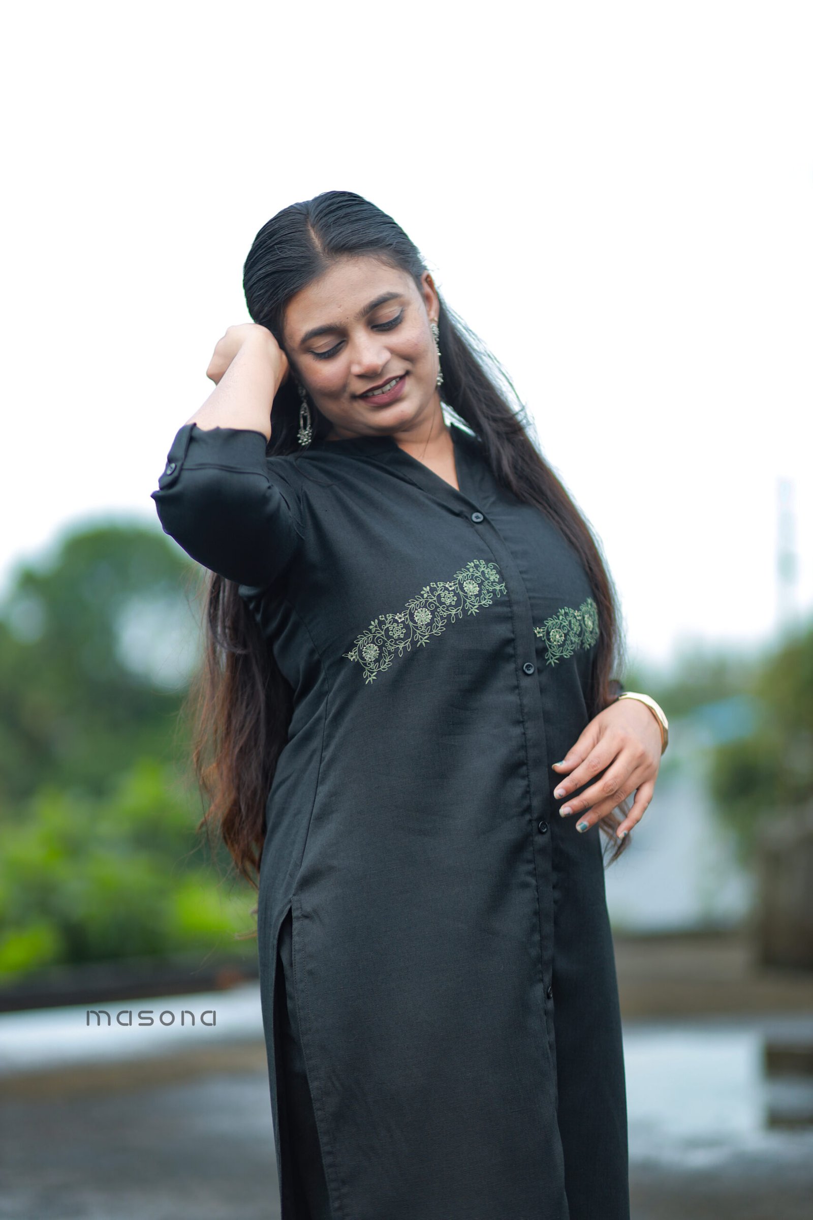 | Top Features | Features decorative embroidery and a stylish side slit. |