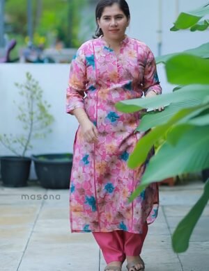 Magic Cotton Embroidered Slitted Top & Bottom Co-ord Set – M1719