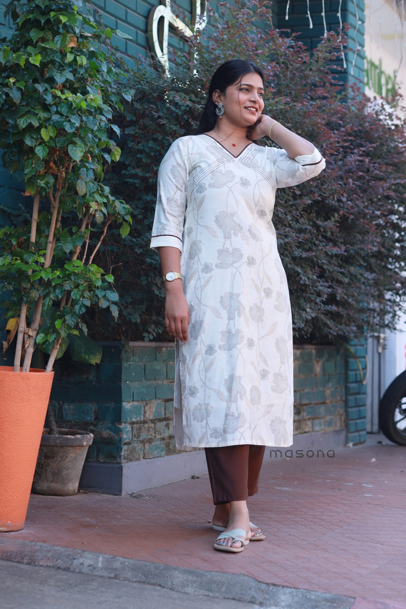Vatican cotton Slitted Top with plain bottom -1829